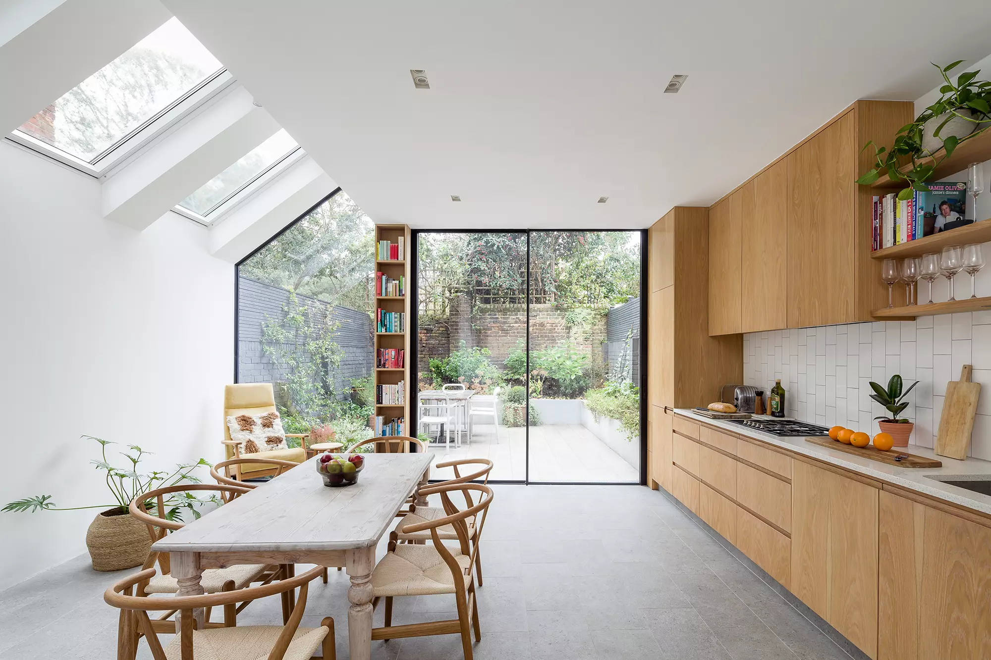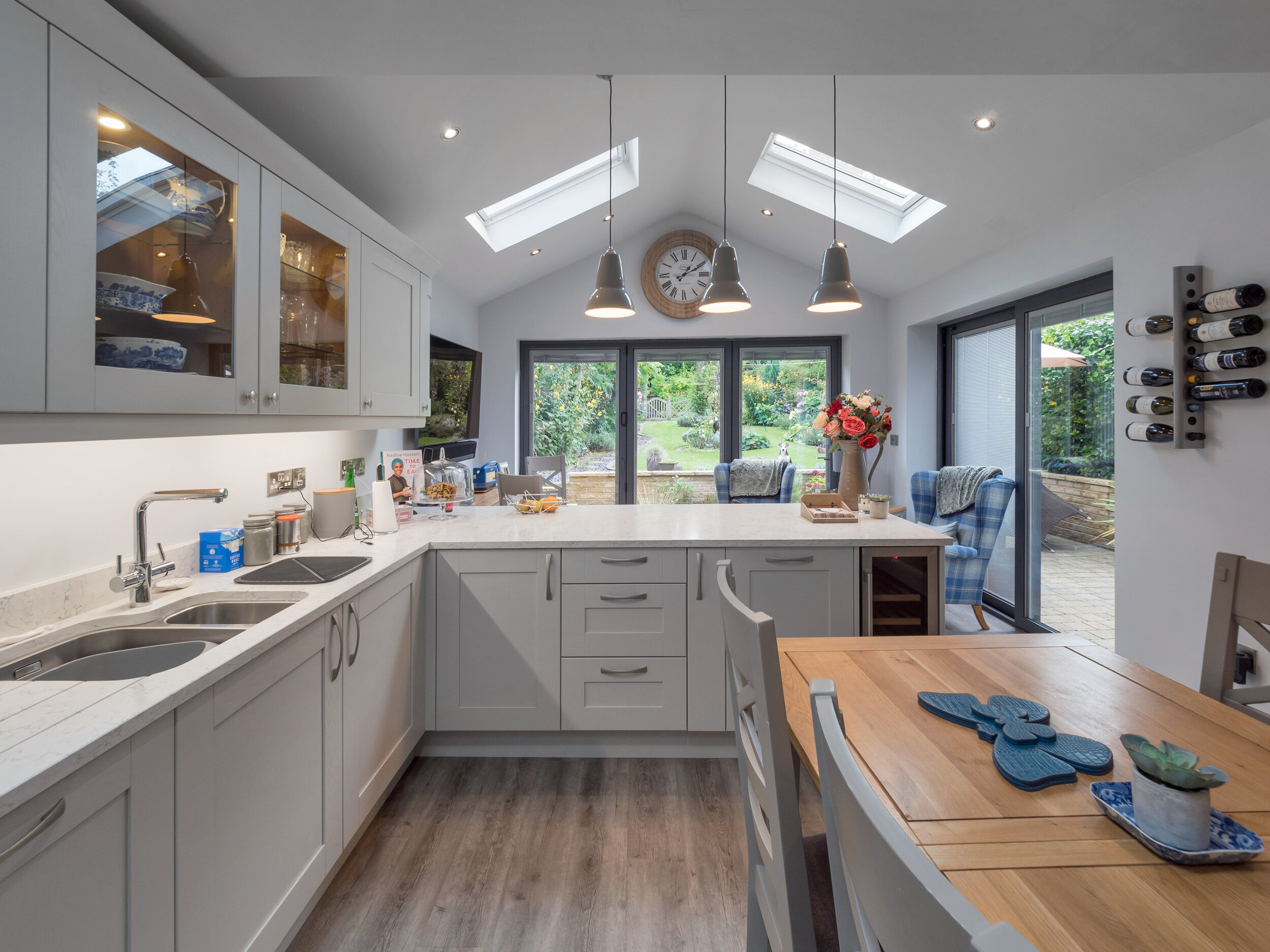 Design and construction of a 20m² single-storey rear extension on a semi-detached house. Included foundations, blockwork, plumbing and electrics for a new kitchen, bi-fold door installation, plastering, and tiled flooring. Focus on increased natural light and open-plan living.
